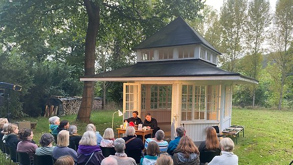 Bei einer Wandellesung im Park, vor dem Sommerhaus, dem Teepavillon und unter Apfelbäumen lesen sechs junge Autor*innen aus ihren (Debüt-)Romanen. Schnelligkeit ist gefragt, denn jedes Autor*innen-Tandem hat nur 40 Minuten Zeit für Lesungen und Fragerunde. Eintritt 15 Euro. Reservierung auf www.hermannshof.de