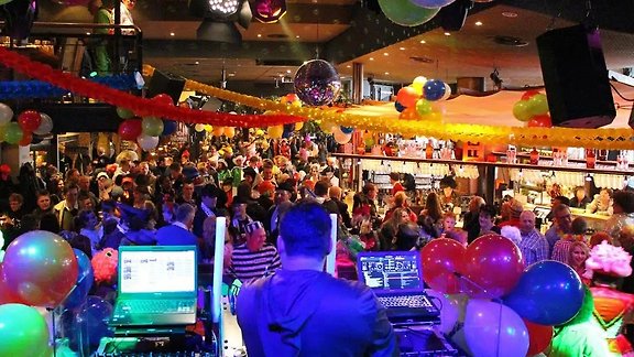 Die Resident-DJs Denny Gee und Rico bespielen das verkleidete Brauhaus schon ab dem frühen Nachmittag mit Karneval-, Schlager- und Kulthits.