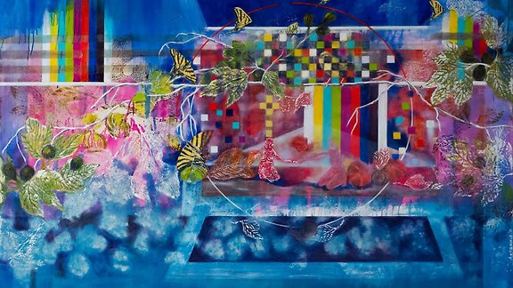 Mirjana Avramović, „In der fünften Stunde I“, 2022, Acryl und Öl auf Leinwand, 90 x 130 x 3 cm, Foto: Mirjana Avramović