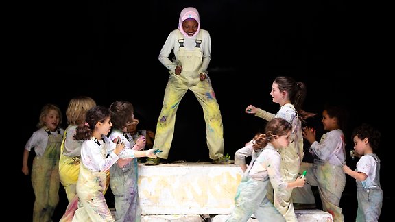 Eine Gruppe von Kindern, viele Wachsmalkreiden, ein großer Vorrat an Farbe und Jazz – das ist „Wasco!“. Zehn junge Darsteller*innen im Alter von 7 bis 13 Jahren erschaffen eine Welt aus dem Nichts. Sie tanzen mit Buntstiften und Pinseln und erbauen dabei ihr eigenes Universum. Das Ergebnis ist ein Gemälde. Ab 6 Jahre.