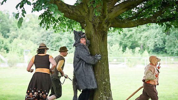 Eine Gruppe wilder Gestalten, halb Mensch, halb Tier erobert die Wiese. Aus allen Teilen der Stadt kommen die Verwandlungskünstler*innen, die Mischwesen, Spieler*innen und Sänger*innen zusammen. Mit Fantasie und Einfühlungsvermögen nähert sich die wilde Schauspieltruppe Fabeln und Tiermärchen an, covert die Brüder Grimm, Aesop, George Orwell und andere fantastische Autor*innen, erzählt von Grenzgänger*innen, schrägen Vögeln, Typen im Fuchs- oder Wolfspelz. Ab 6 Jahre. VVK 20 Euro, VVK ermäßigt 8-15 Euro unter Tel. 0511 2133135 oder per E-Mail an karten@fensterzurstadt.de.